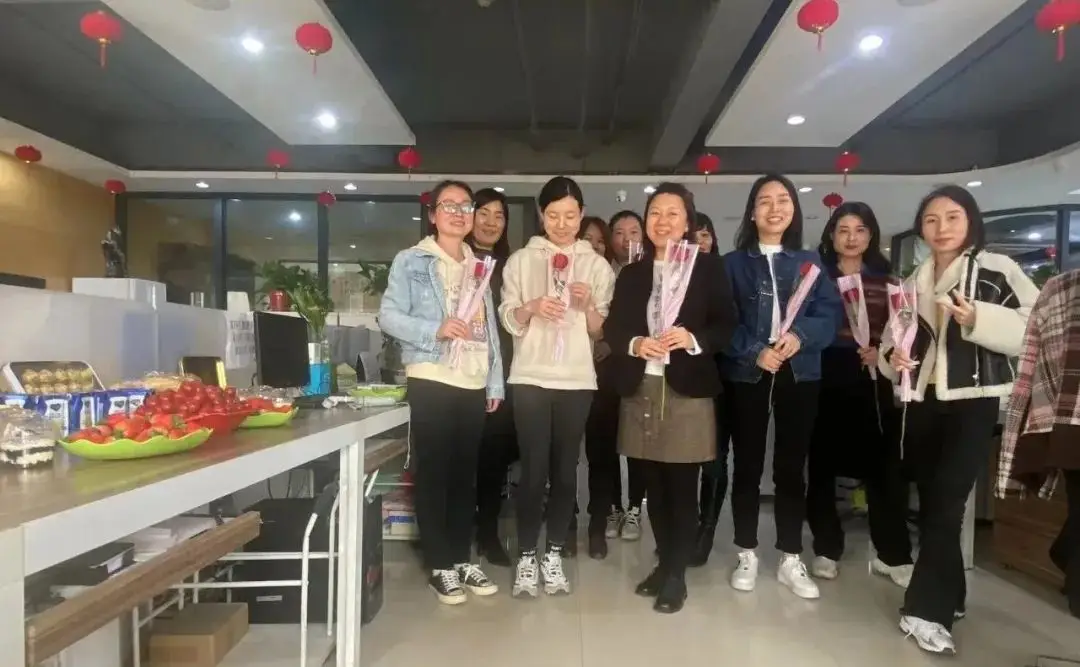 一束束芬芳的鲜花和女职工们灿烂的笑容交织融合,营造出浓浓的节日氛围。